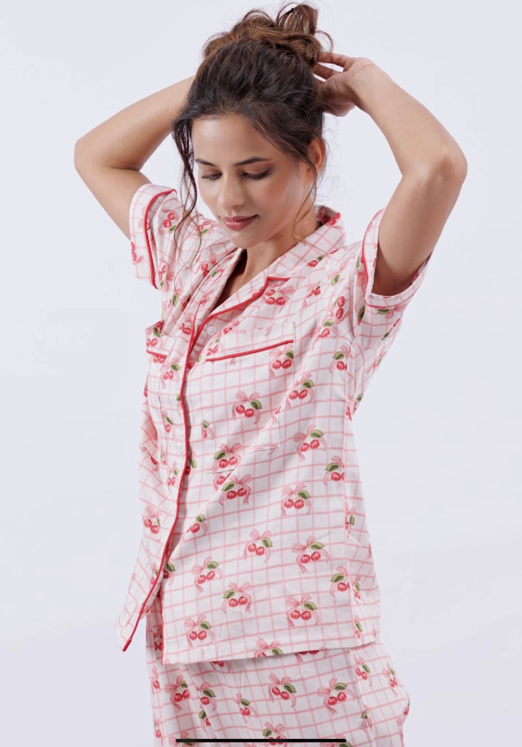 Designed to be worn completely braless, this night suit features 4 layered chest pockets on both sides that offer soft shape & coverage so you feel natually comfortable, all day and night. The collared, button-down shirt pairs effortlessly with relaxed payjamas, finished with piping for an elevated touch. Crafted with premium,breathable fabric, it feels as soft as it looks - light, airy, and luxuriously smooth on your skin. Paired shorts are also available in the same ultra-soft fabric, with a comfortable elasticated waist.